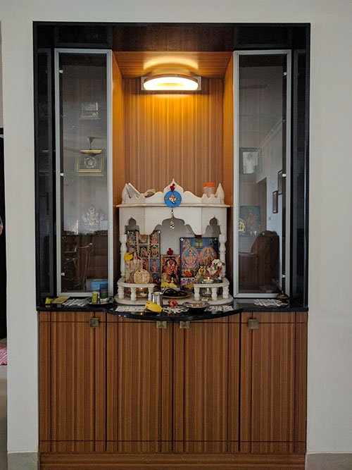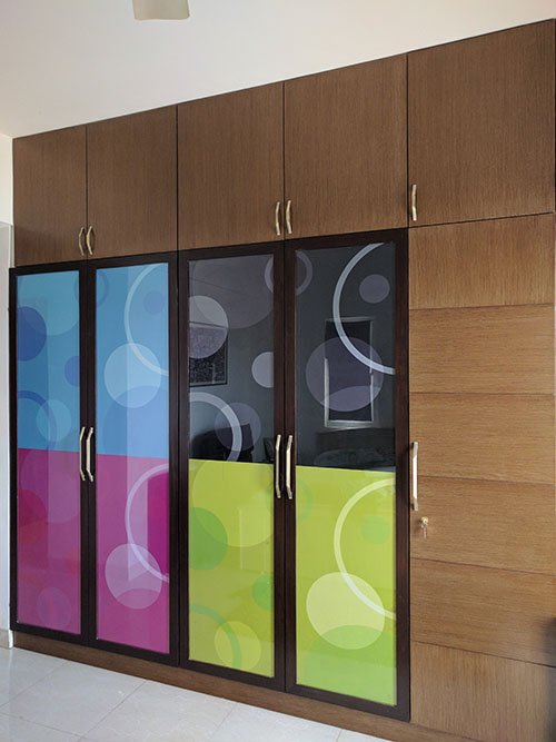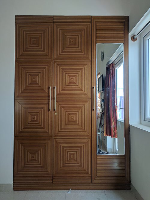 At Springfield, A combination of wooden textures and wooden hues are used for the wardrobe shutters. This design comes with efficient storage space owing cabinets. The shutter wardrobe doors with the long handles gives the design a premium look and feel.